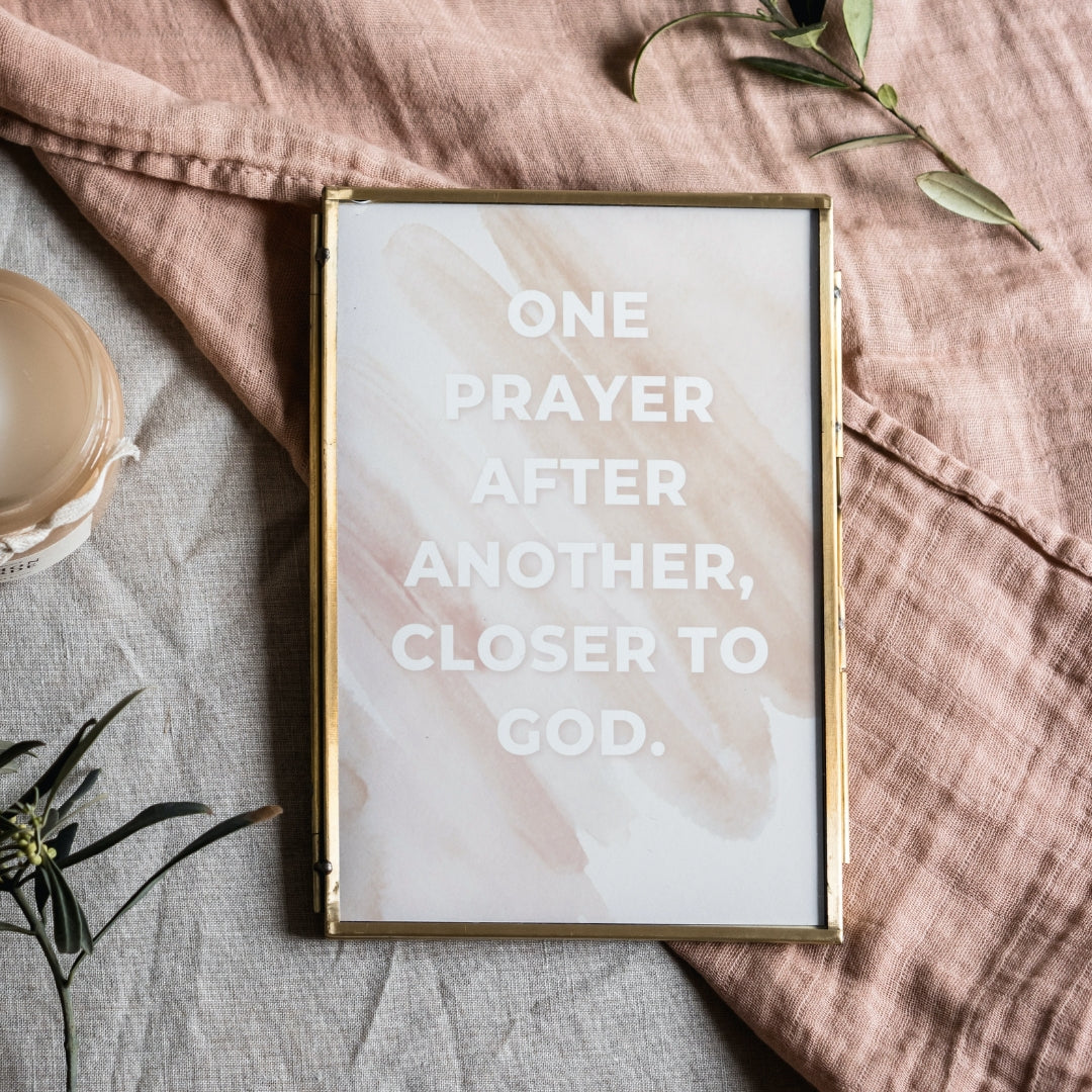 Du erhältst ein schlichtes, aber tolles Design mit den Worten "one prayer after another, closer to god."