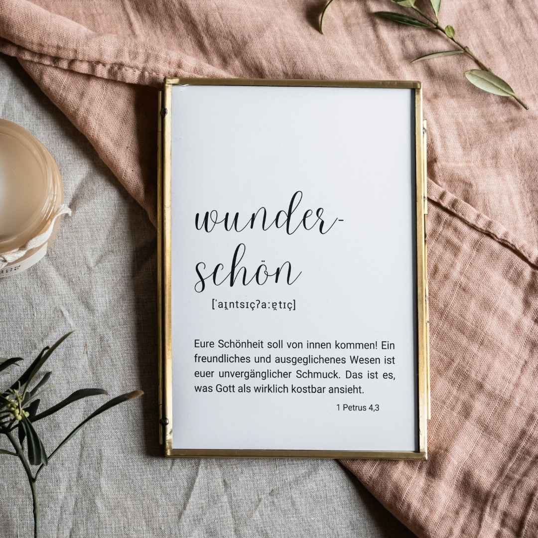 Du erhältst ein schlichtes, aber tolles Design zum Thema wunderschön sein, mit einem Bibelvers aus 1. Petrus 4.