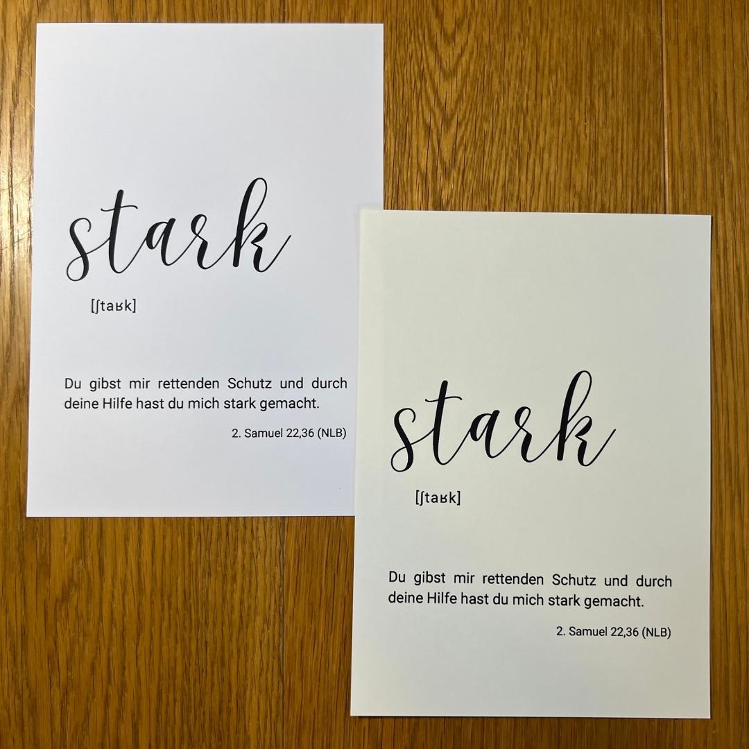 Du erhältst ein schlichtes, aber tolles Design zum Thema stark sein, mit einem Bibelvers aus 2. Samuel.