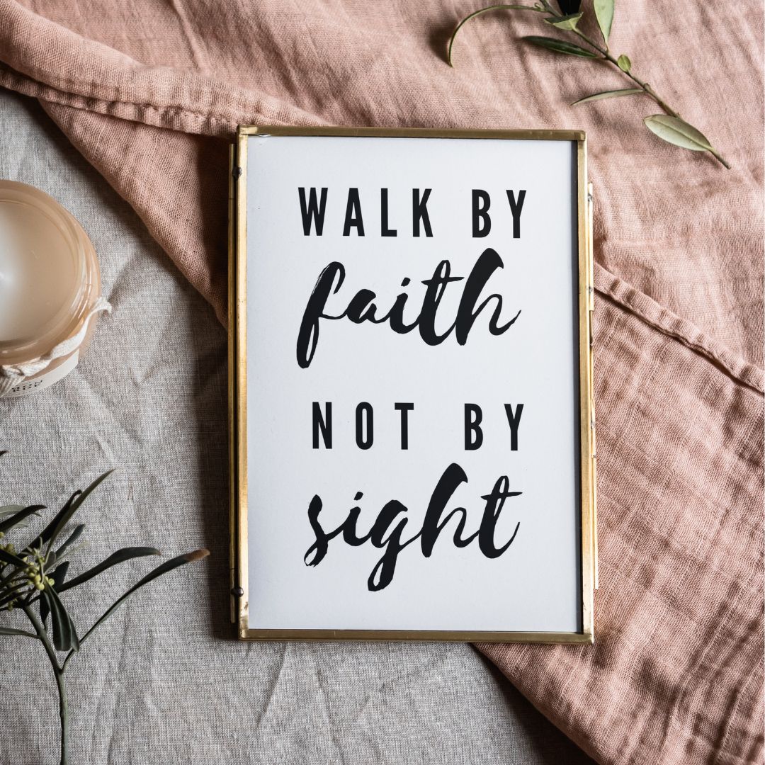 Du erhältst ein tolles Design, mit den Worten "walk by faith, not by sight".