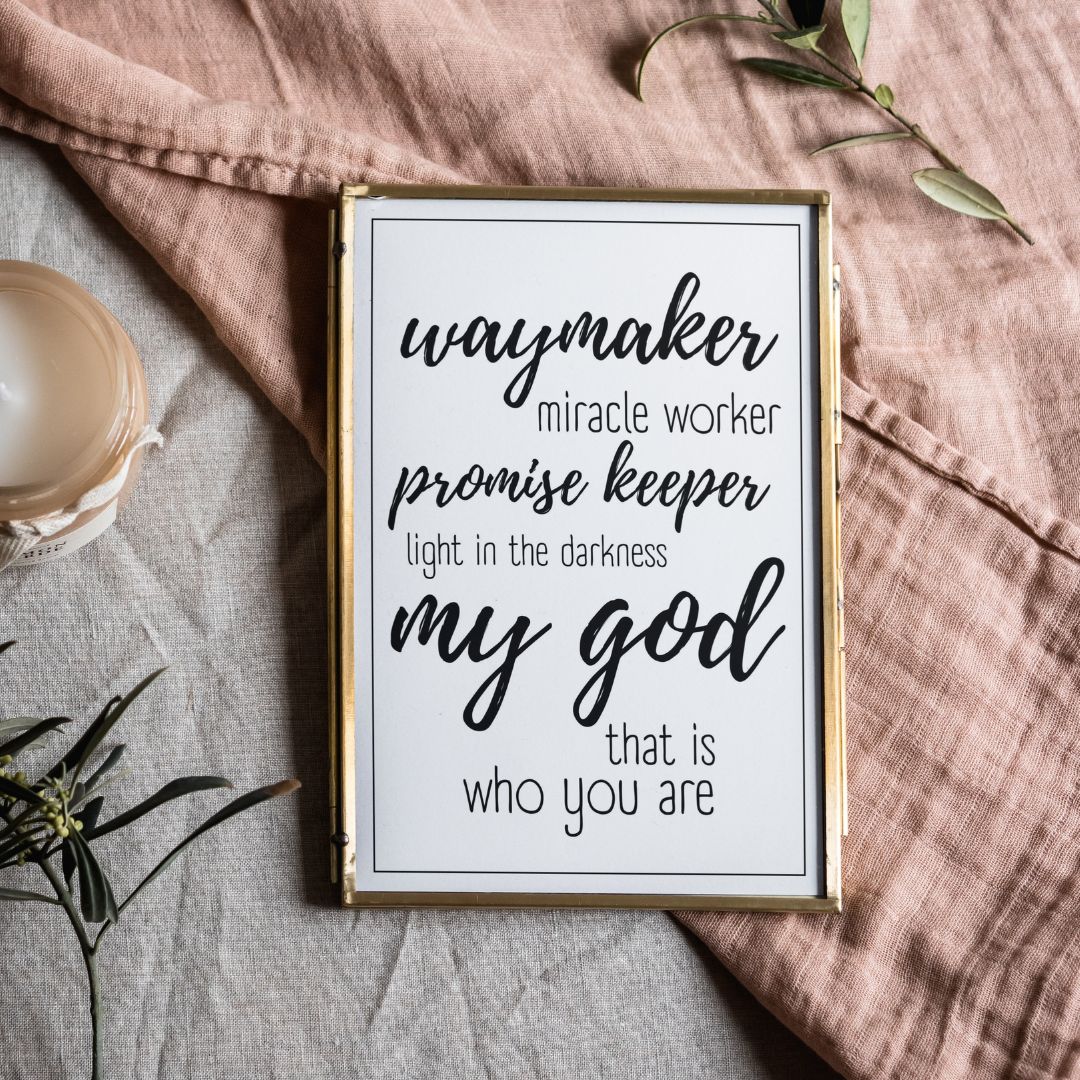Du erhältst ein tolles Design, mit dem was Gott für uns ist. Waymaker, Miracle Worker, Promise Keeper, Light in the Darkness. In einer zweiten, etwas anderen Version.