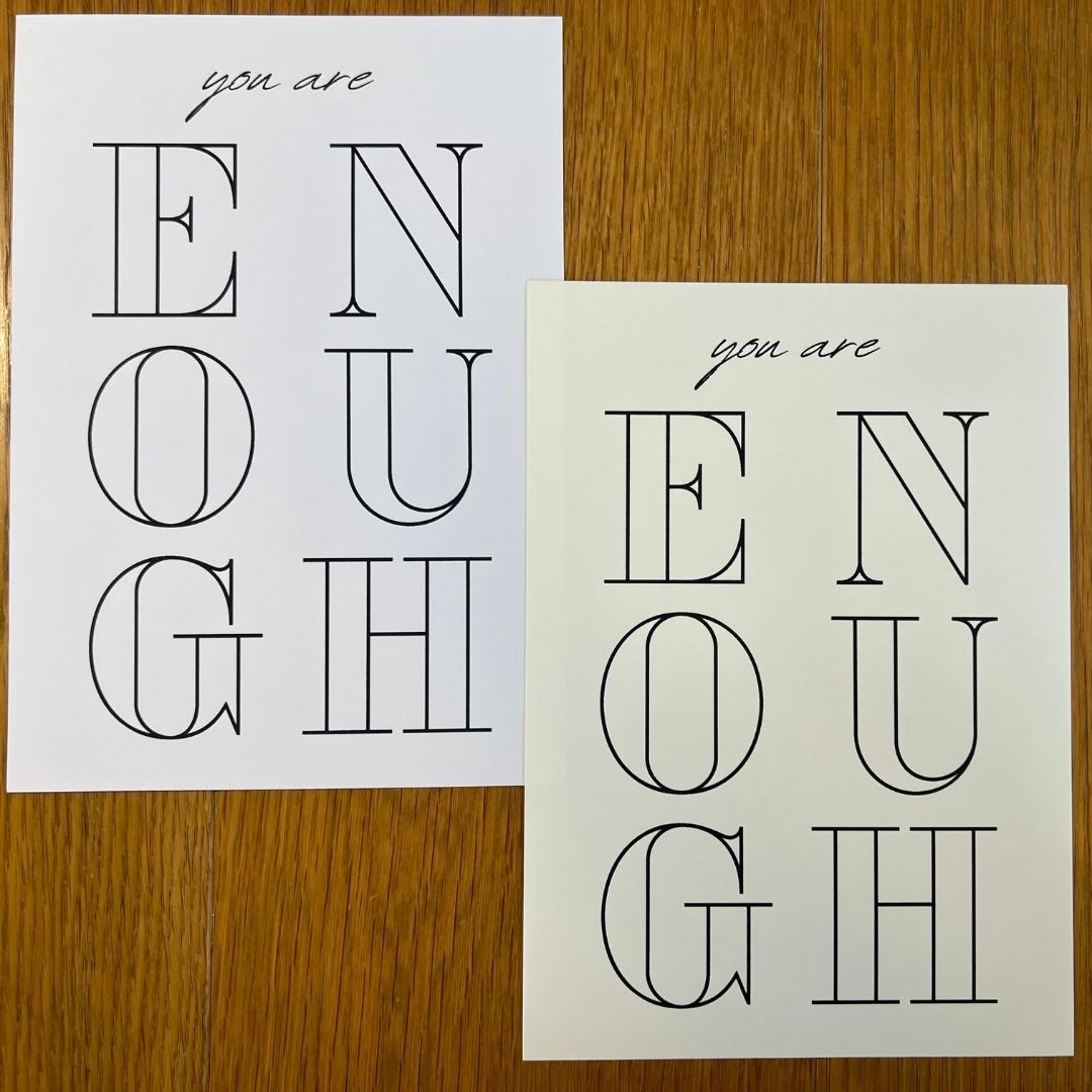 Du erhältst ein tolles Design, mit den Worten "you are enough", weil du in Gottes Augen genug bist.